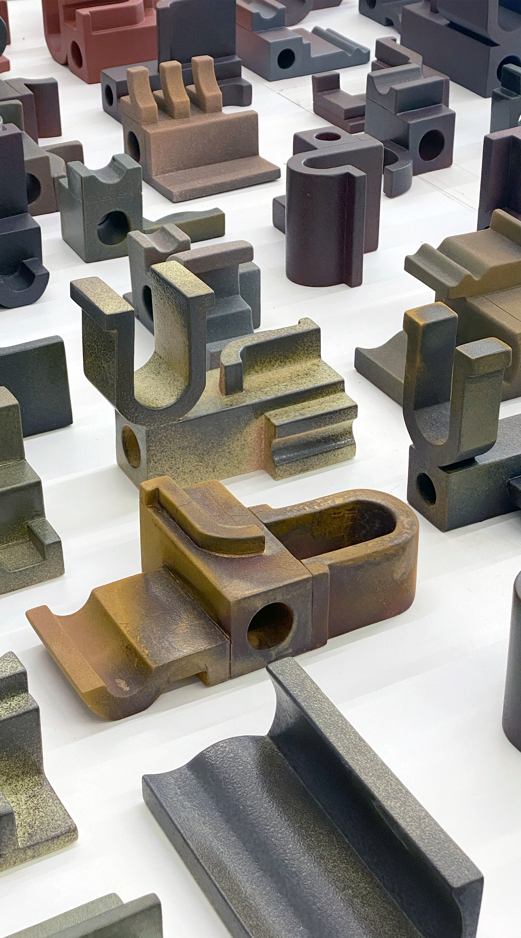 リック・ヨシモトという人物をご存知でしょうか。彼はニューメキシコ州サンタフェにアトリエを構え、ずっしりと存在感のある木製のスツールやテーブル、木目に想を得た絵画などさまざまなメディアの作品制作しています。今回はその中で彼が手がけたセラミックのプレートを紹介します。 彼のつくるプレートは、今年、ATELIER MUJI GINZAで開催された“MODERNISM SHOW”にて日本では初のお披露目となり、そちらでご覧になった方もいるかもしれません。その造形的な意匠が目を引き、プレートという言葉でイメージされるものとは、とても距離があるものだったために記憶に残っている方もいらっしゃるかもしれません。では、どのような特徴がそのプレートには備わっているのか。たとえば、壁に飾ったり皿立てで一角に飾ったりするようなアートピースとして愉しむだけでは見えてはこない側面です。 セラミック以外にもいろんなマテリアルで制作していることは前にお伝えしましたが、その多面的なものづくりが一直線でつながっているように感じます。つまり、粘土があたかもキャンバスのように見立てられて絵が描かれ、また釉薬を抽象画を構成するように掛け分けたり、さらに木の皮を押し付けることによって独特な質感をもたらしています。起伏をつけることで更に奥行きが生まれ、一見してプレートには不必要とは思われる意匠がそこかしこに仕掛けられています。 彼のプレートに触れると、プレートはもっと自由であってもよいのではないか?という思いにかられます。たとえば皿という言葉でイメージされるのは、卓上に料理が盛り付けられるような平面的なものというところじゃないでしょうか。このプレートには、そのような先入観で固められたイメージから解放してくれるようなおおらかさがあります。彼は過去にこのように語っています。「いつも表裏の両面にも釉薬を施します。それは実際に使って欲しいからです。ただ壁に飾っておくようなものではない。使って欲しいからこそ、裏側も同じように重要なのです。」(Rick Yoshimoto on nature and geometry By Samantha Kimmey 06/25/2015)そこには表も裏もないのかもしれません。そこではプレートというものに求められる造形は、必要不必要といった機能性から自由です。もっと皿で遊ぼうと呼びかけてくれるようなリックさんの作品は、使い手の視線や感性を養い、より豊かな生活者へと導いてくれるのではないでしょうか。ぜひこの貴重な機会にご覧ください。 Playmountain 柳田・品川