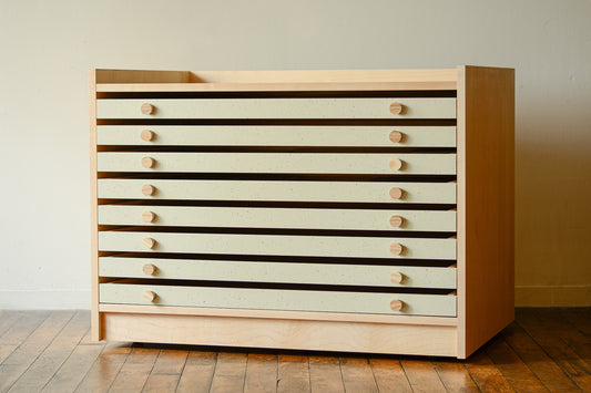 11月15日から始まった企画展 Form Follows Function #4 “Lights”。「Form Follows Function」この言葉は、建築家ルイス・サリヴァンが残した言葉。デザインにおける美しさは、機能に従属するものという考え方。この考えをもとに、素材や加工、用途に焦点をあてた企画展を開催してきました。“Lights” をテーマにした開催は2016年が最後、約9年ぶりの開催となります。時を経て照明技術の進歩もあり、様々な仕様の照明が登場しています。今回は照明だけでなく、陶器、建築設計、ガラス作家など、日本国内で活躍する作り手に焦点を当てた展示となっています。“灯すこと”を目的としながらも、それぞれが異なる視点や発想で形づくったプロダクトやアートワークが並び、光との向き合い方の豊かさを感じていただける内容です。会場を見渡すと、素材だけを取っても多様です。動物の革をシェードに仕立てた作品、アルミの板材に手漉き和紙を貼り合わせたもの、モロッコの左官技法によって生まれた表情豊かな灯具など、手法も質感も一つとして同じものがありません。どの作品も灯具としての機能を備えながら、作家それぞれの自由な表現が宿っており、点灯の際に生まれる光の濃淡や影の輪郭、空間のコントラストに至るまで、個性が際立っています。また今回は、ヴィンテージ家具や国内木工作家の作品、オリジナル家具との組み合わせも楽しめるよう構成しています。光と素材、光と家具、光と空間の関係が重なり合うことで、暮らしの中での灯りの役割や豊かさがより鮮明に見えてくるはずです。最近は一段と寒さが増し、日が暮れるのも早くなってきました。冬を迎えるこの季節は、とくに家の中の灯りが生み出すあたたかさや、ほんのりとした安心感が心に沁みるように感じます。そんな季節に、様々な作り手の思いと素材が重なり生まれる光の表情を、実際に体験してみて下さい。“Lights”Form Follows Function #4 2025.11.15 sat - 11.30 sunONLINE PAGE