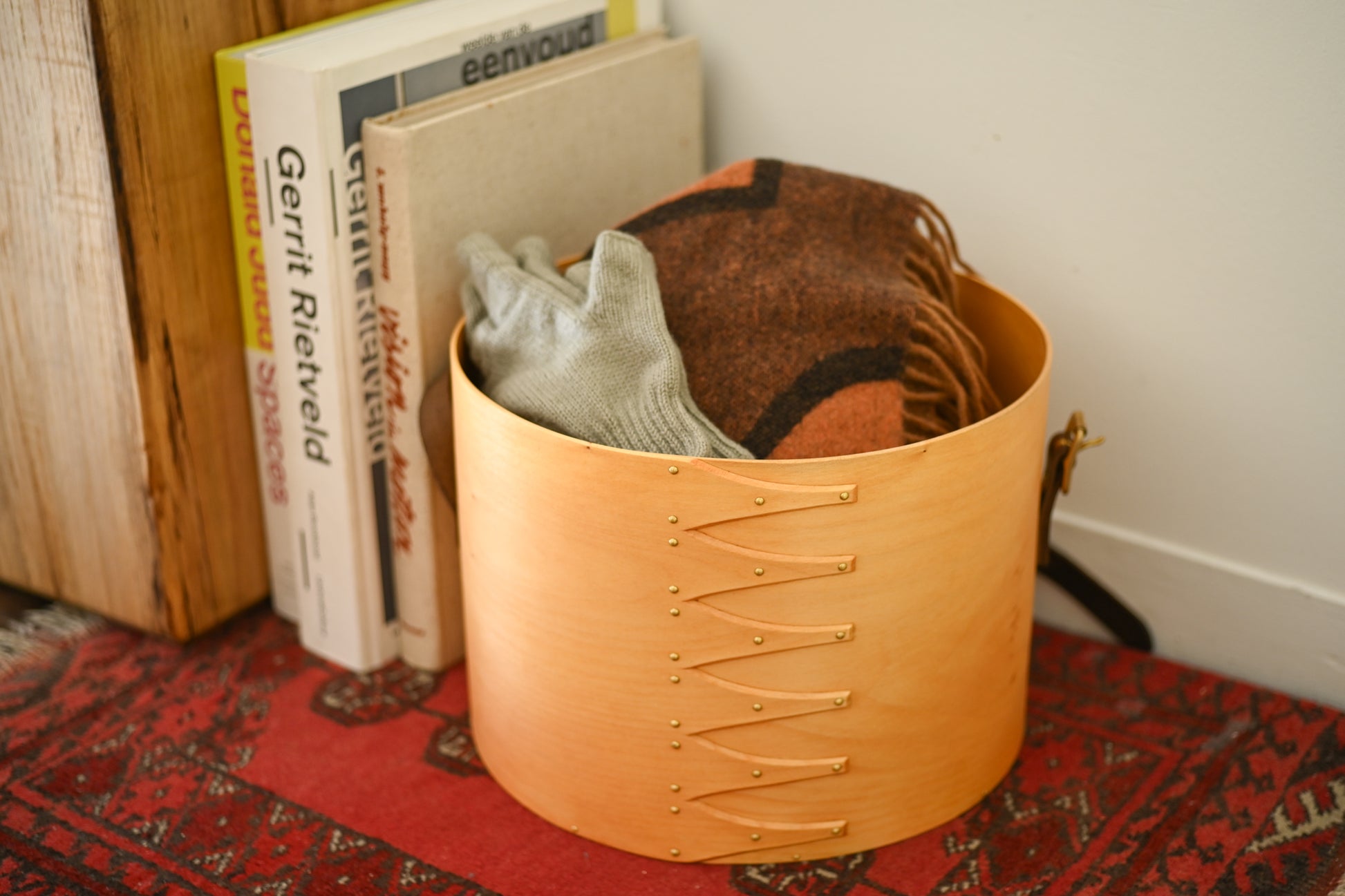 表面はオイル仕上げ、裁縫道具や文具を入れたりと、使い手によりいろいろな用途はさまざまです。収納力があり、衣類や小物はもちろん、Largeサイズはワイングラスも収納できます。