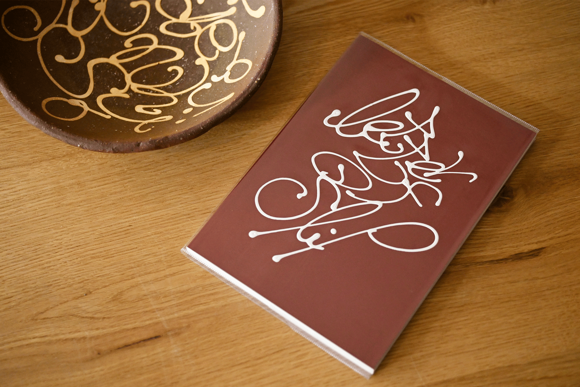 選んだ言葉、描き方、読めるもの、読めないもの、日用品の食器にちょっとした要素が加わるだけでとても楽しいものになります。限定200部です。