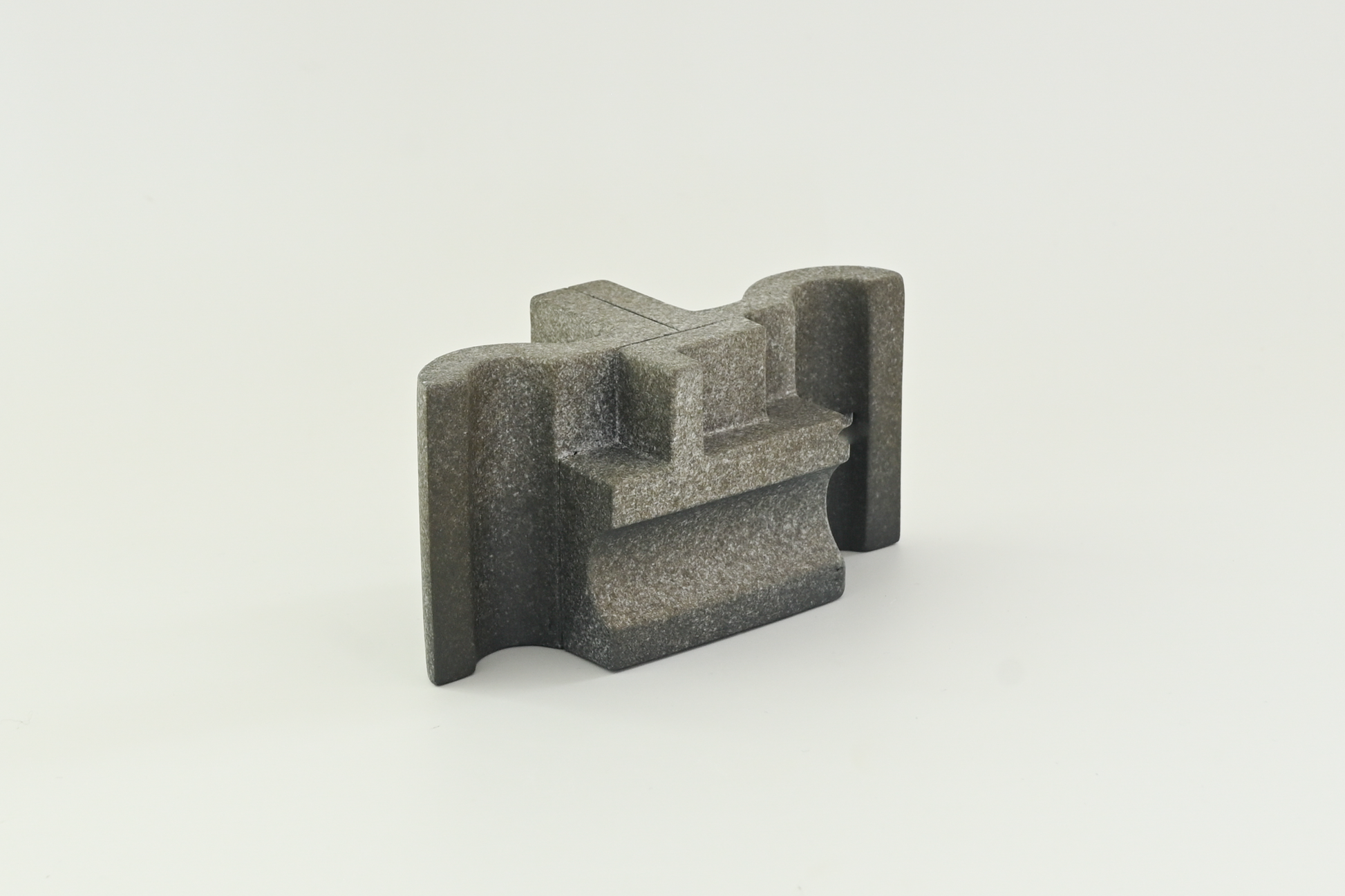 陶磁器とは思えない精巧な造形は、まず押し出し成形によって円筒、建築物の様々なディテールからインスピレーションを受けたかたちのパーツを作り、それらを組み合わせることによって制作されています。