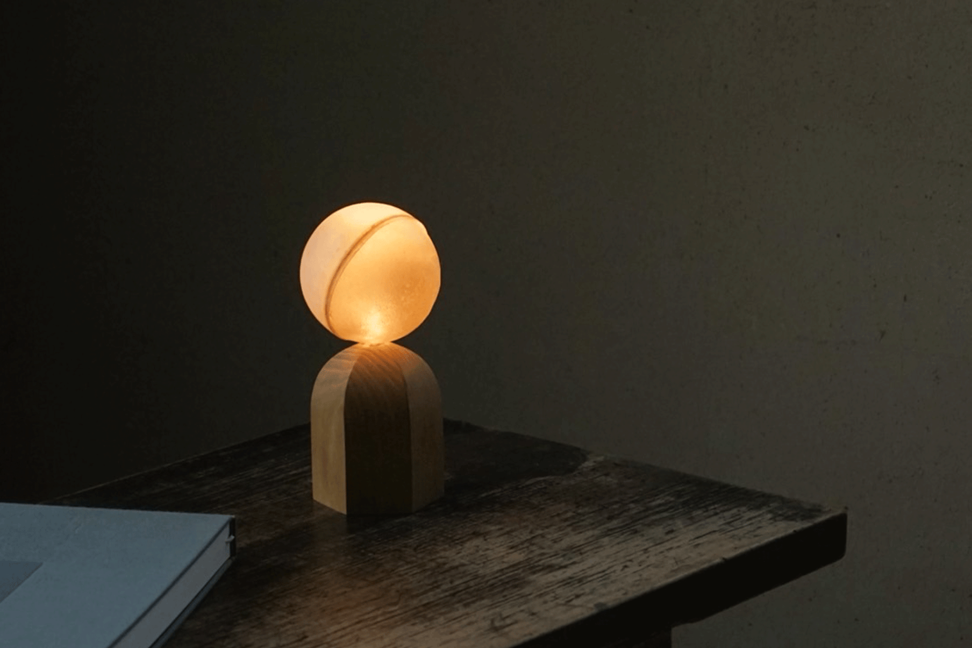 古くから紙の代わりに使われていた羊皮紙の類で、皮でありながらも透過性を持ち、質感はプラスチックとも思えるような硬さですが、その表面には皮ならではの凹凸があり、型ガラスのように光を屈折させ柔らかい明るさです。