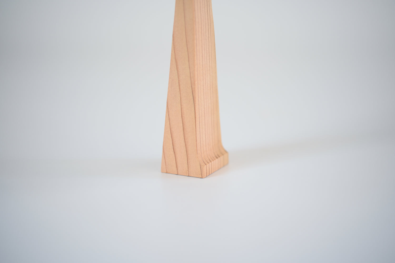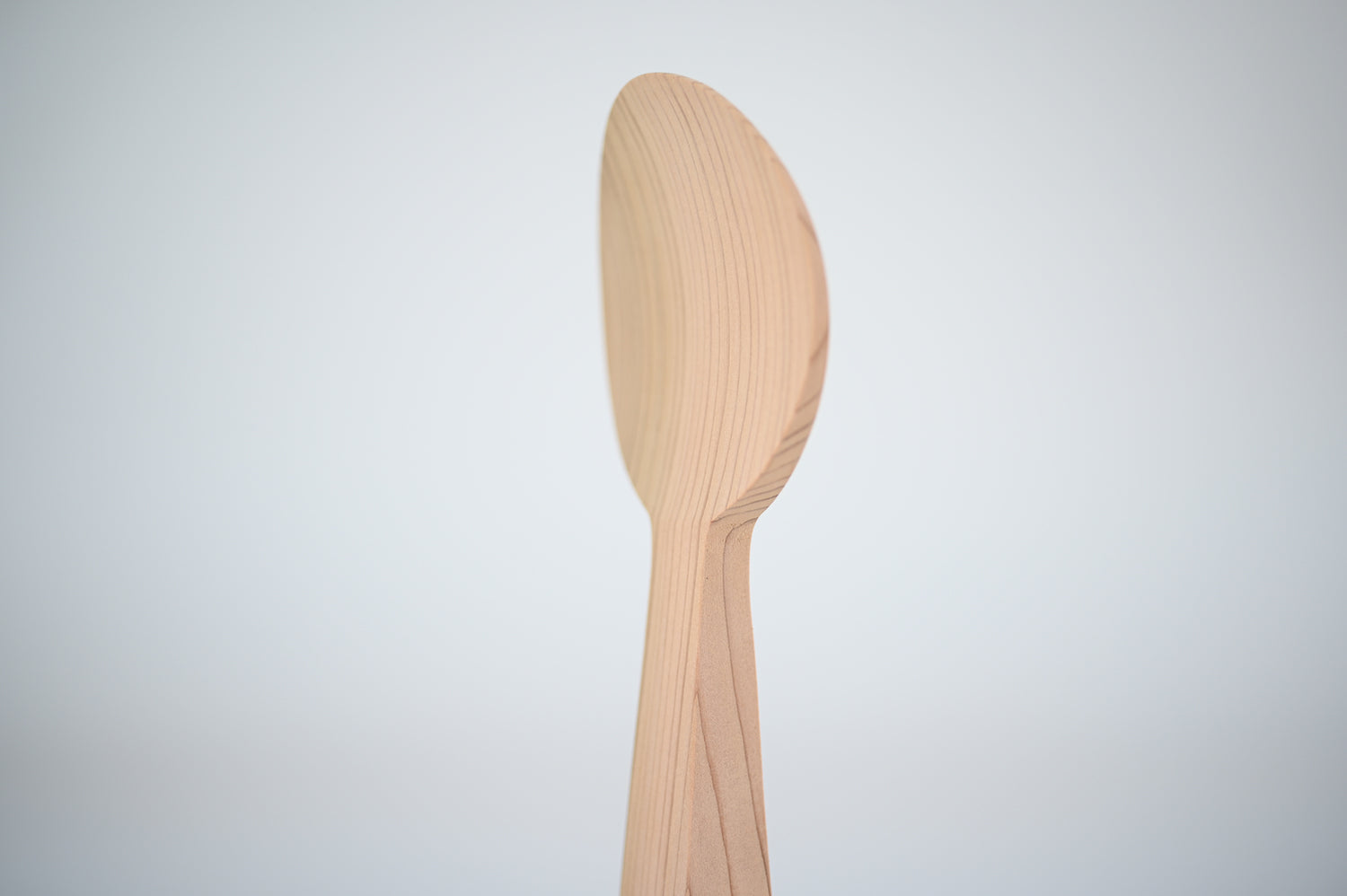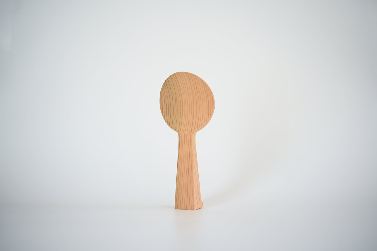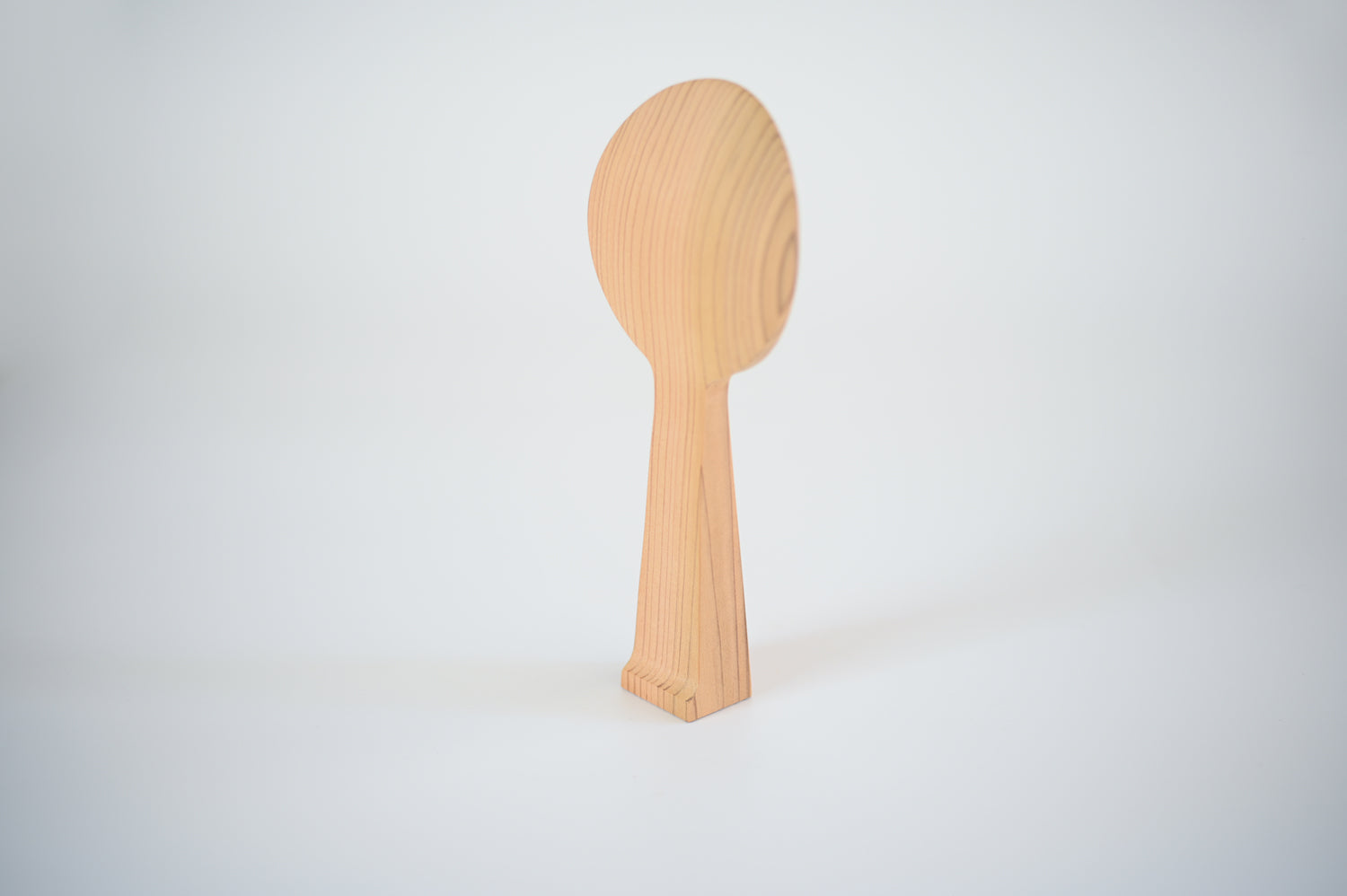 住宅で最も良く利用される2x4の材の切り落としから削り出したしゃもじです。厚みのある材だからこそ出来る柄の太さによって、しゃもじを立てておくことができます。