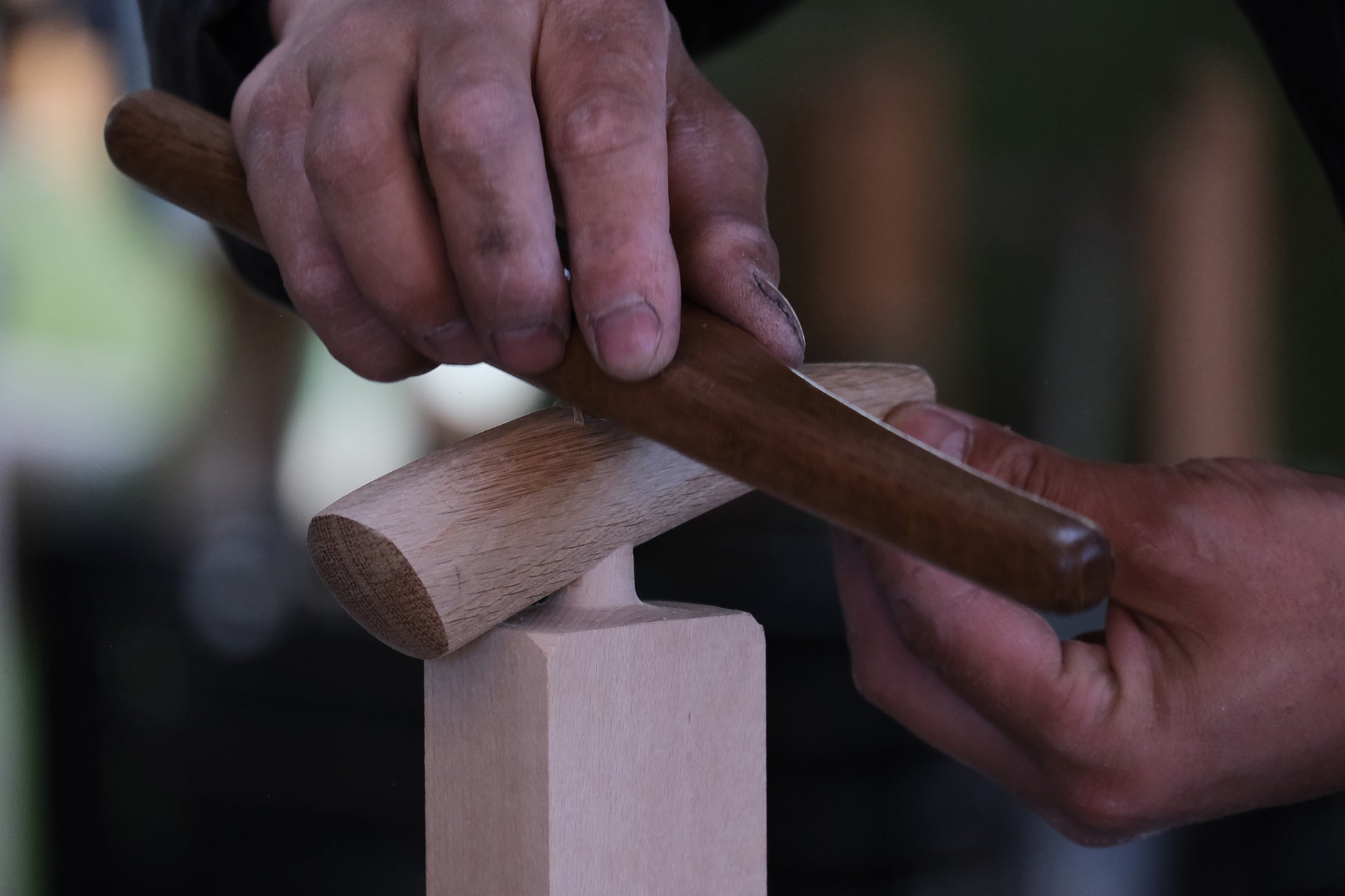 福岡に拠点を置くアパレルブランド〈FUJITO〉と木工ブランド〈DOUBLE=DOUBLE FURNITURE / 主宰:酒井 航 〉の共作によるShoehorn。