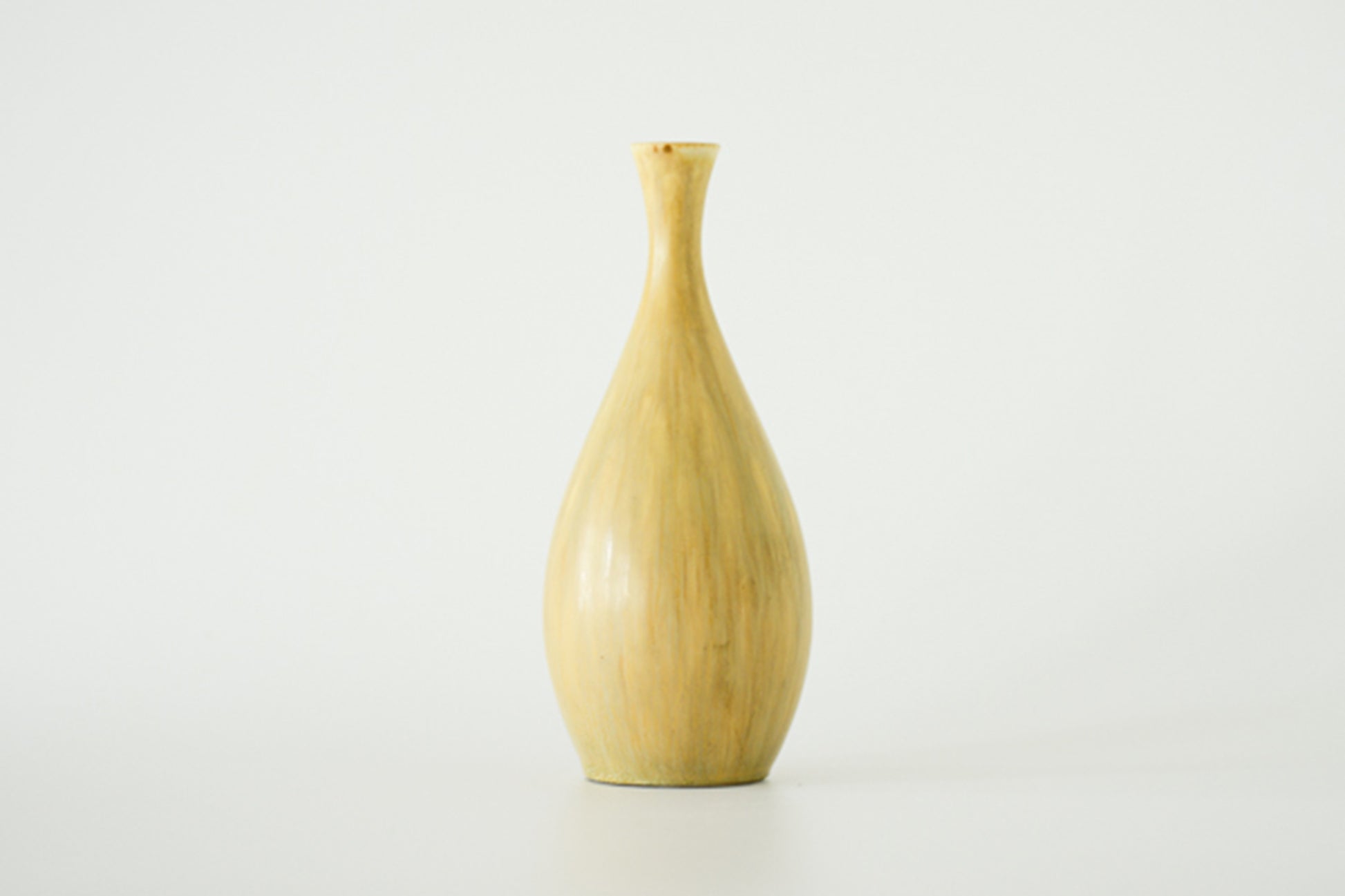 スウェーデンを代表するデザイナー、カール=ハリー・スタルハーネ(Carl-Harry Stalhane) がデザインした細身の一輪挿しです。18世紀に王室御用達の窯元として創業した〈ロールストランド〉社の工房で製作されたもの。まるで筆で描いたような見事な釉薬が魅力的な作品です。